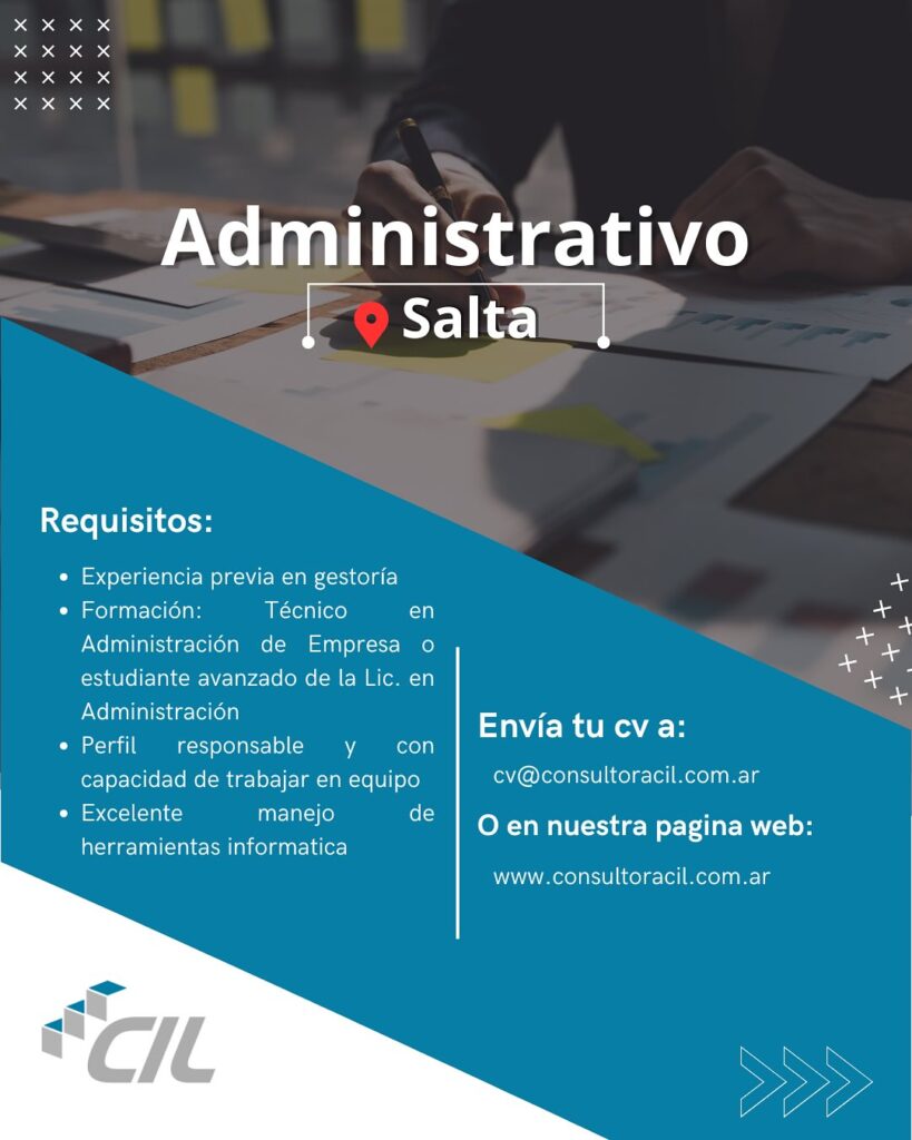 ✔️ Formación: Técnico en Administración de Empresas o estudiante avanzado de la Lic. en Administración